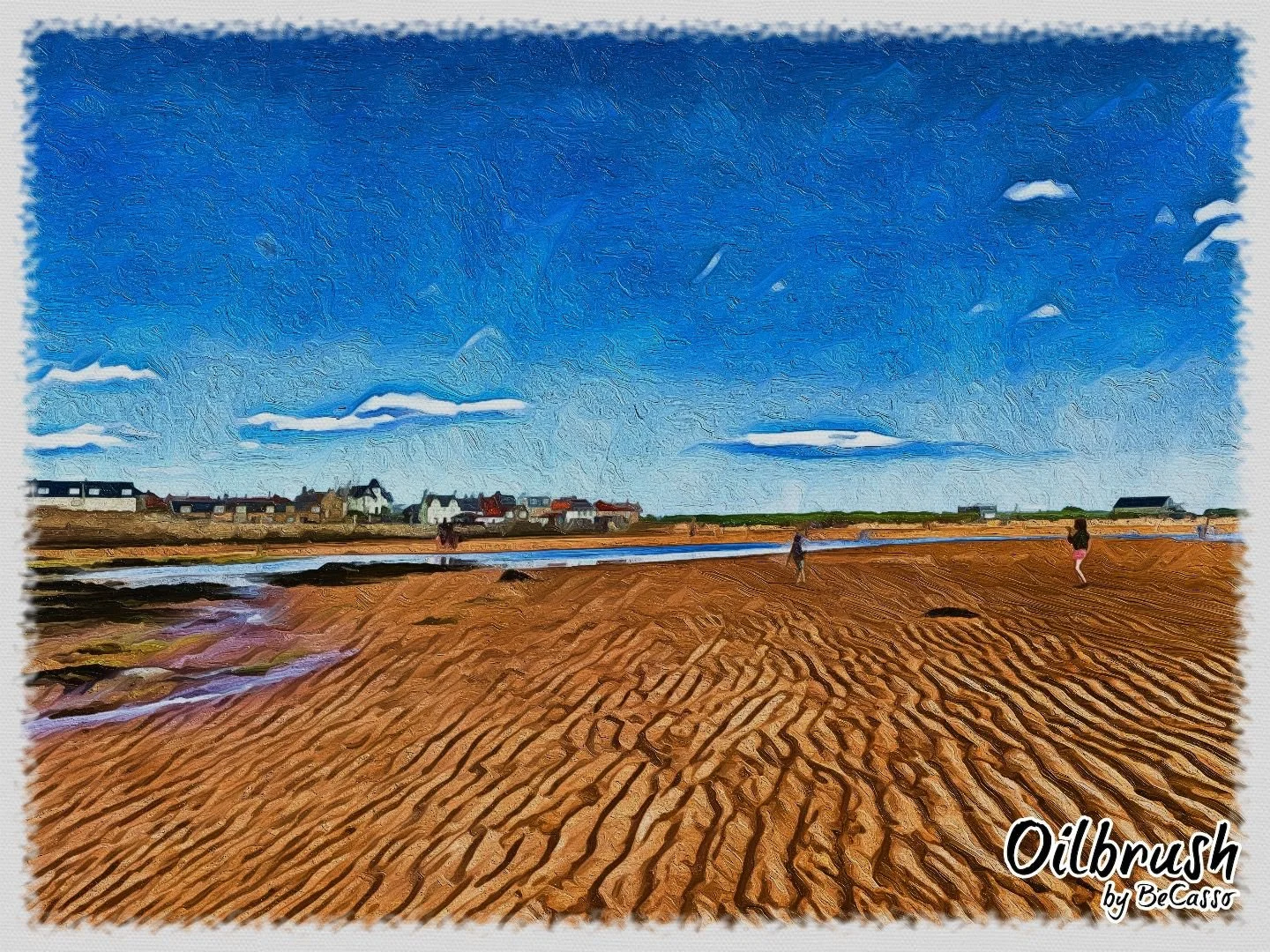 I then drew up a contract in which we established all the necessary details including the materials I would be using, the dimensions of the artwork required, its orientation, whether framing would be required, the colour palette and style of painting, the overall concept of the painting (in this case a painting of the family playing with a kite on the beach loosely based on the photographs provided, with an emphasis on the sky creating a sense of space) and any existing Hayley Stokes Art images being referenced.